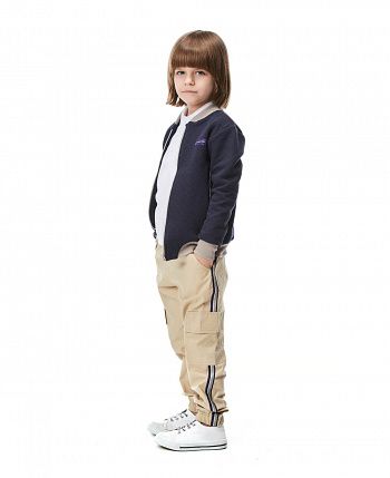 Брюки для мальчиков изготовлены из натурального хлопкового трикотажа. Свободный крой модели обеспечивает оптимальный теплообмен и не стесняет движений. Широкий эластичный пояс на шнурках мягко облегает живот и не оказывает давления на кожу. Особую привлекательность модели придают стильные накладные карманы-портфели и широкие лампасы по бокам. Шорты выполнены в сдержанном бежевом цвете с контрастными белыми элементами.